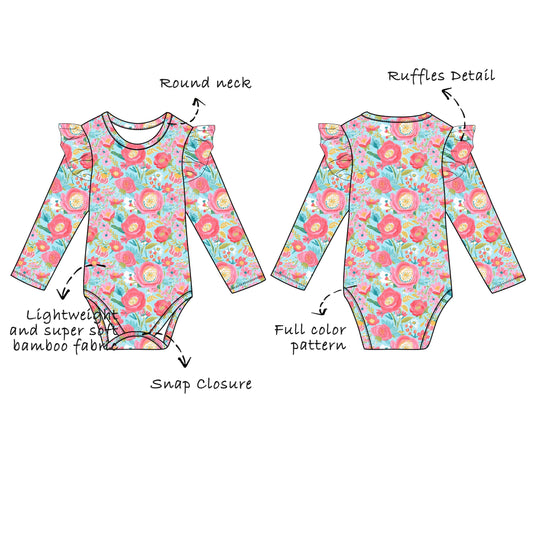 Custom Bamboo Viscose Baby Long Sleeve Ruffled Bodysuit
