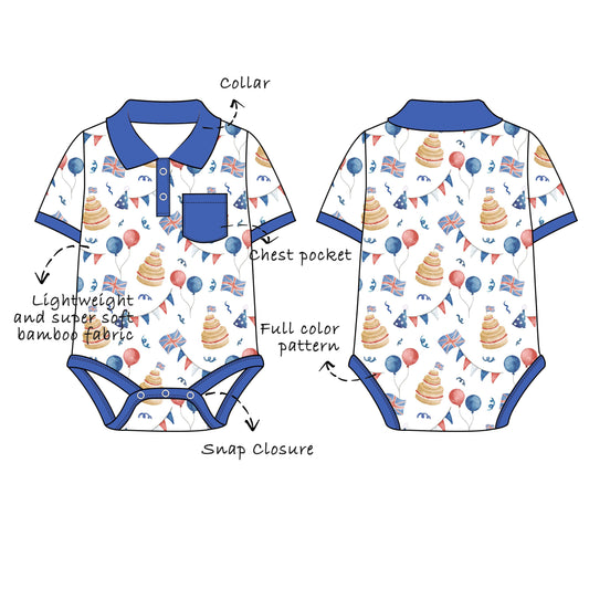 Custom Bamboo Viscose Baby Polo Collared Bodysuit with Chest Pocket