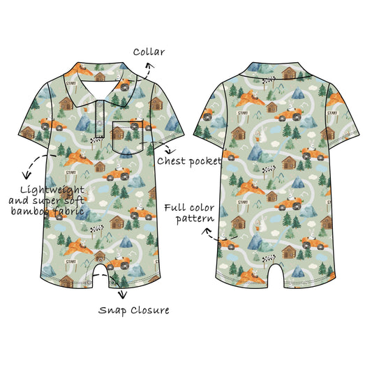Custom Bamboo Viscose Baby Polo Collared Shortie Romper with Chest Pocket