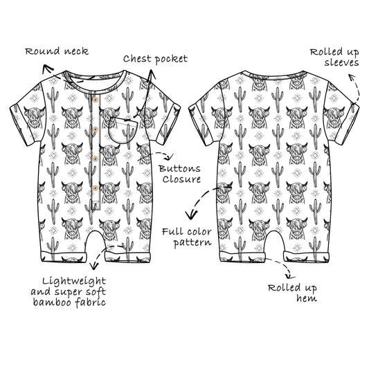 Custom Bamboo Viscose Baby Rolled-up Shortie Romper with Chest Pocket