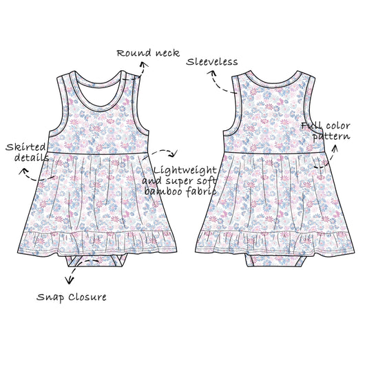 Custom Bamboo Viscose Baby Sleeveless Skirted Bodysuit