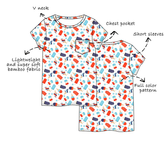 Custom Bamboo Viscose Round Neck Short Sleeves Tees with Chest Pocket
