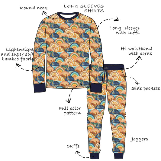 Custom Bamboo Viscose Baby & Toddle & Kids Long 2 piece set- Long Sleeves Shirts + High Waistband Jogger