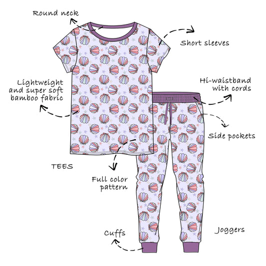 Custom Bamboo Viscose Baby & Toddle & Kids Short 2 piece set-Short Sleeves Tees+ High Waistband Joggers