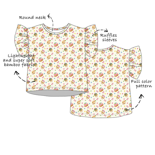 Custom Bamboo Viscose Ruffle Sleeves Tops