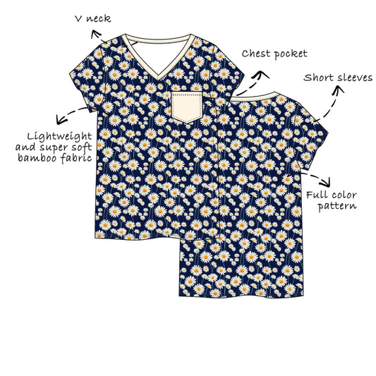 Custom Bamboo Viscose V Neck Short Sleeves Tees with Chest Pocket