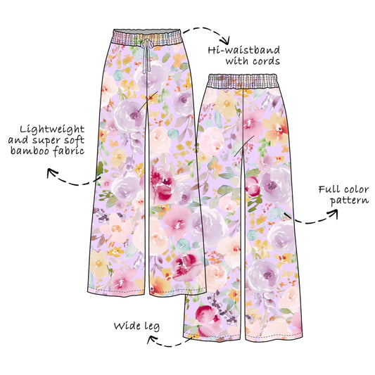 Custom Bamboo Viscose Girls & Women Wide Leg Pants-Printed